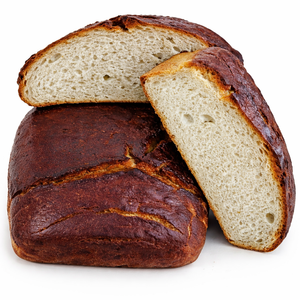 Питательный хлеб с картофельными хлопьями и карамельной патокой. Мягкий, сочный мякиш и насыщенный вкус делают его отличным вариантом для ежедневного стола.