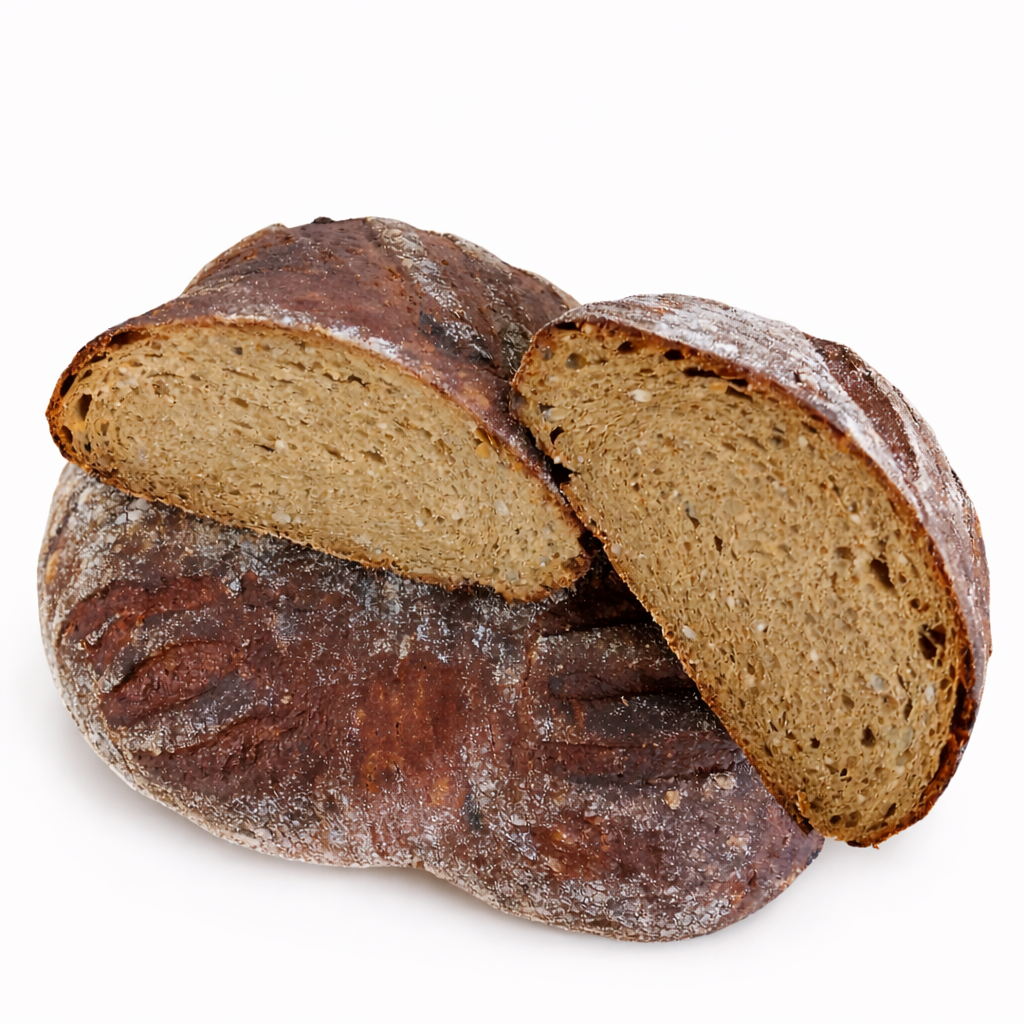 Старорусский хлеб — ароматный хлеб на натуральной закваске с насыщенным вкусом и плотным мякишем. Выпекается по традиционной технологии с добавлением квасного сусла, которое придаёт лёгкую кислинку и глубокий хлебный аромат. Хрустящая корочка и щедрая посыпка семян подсолнечника делают вкус особенно выразительным. Идеально подходит к первым блюдам, закускам и домашним бутербродам.