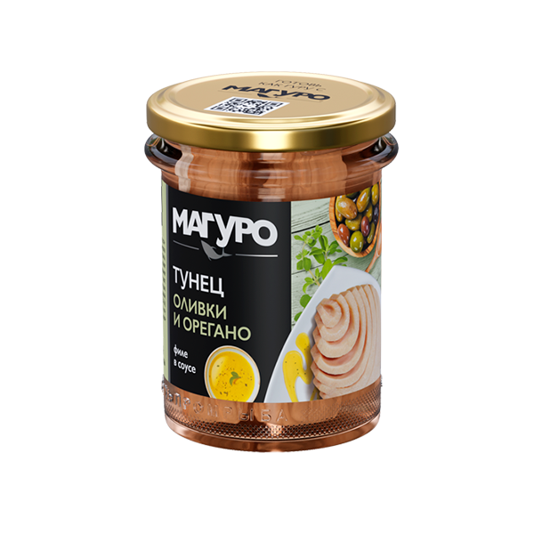 - Филе полосатого тунца Магуро в соусе «Оливки-орегано» 200 гр.