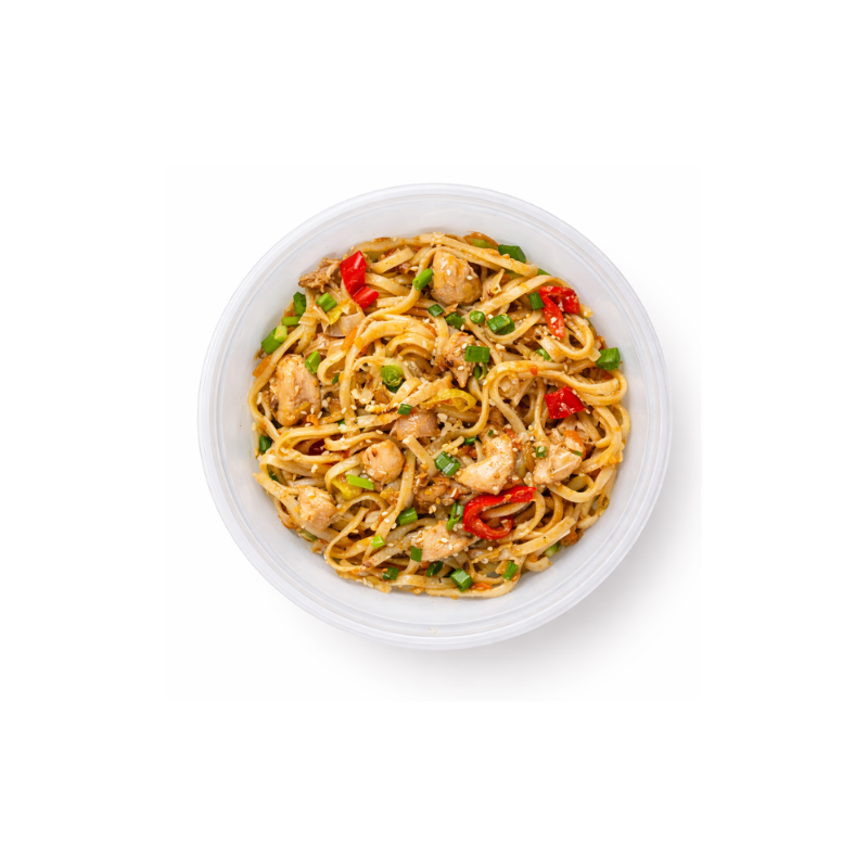 Сытная лапша удон с нежной курицей и соусом. Гармоничное сочетание вкусов и текстур в азиатском стиле.